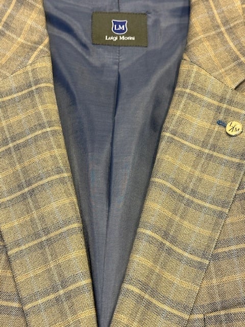 Ein moderner klassischer Blazer in blau/grauem Karomuster. Ein Blazer, der sowohl sportlich als auch lässig über Chinos oder Jeans getragen werden kann.