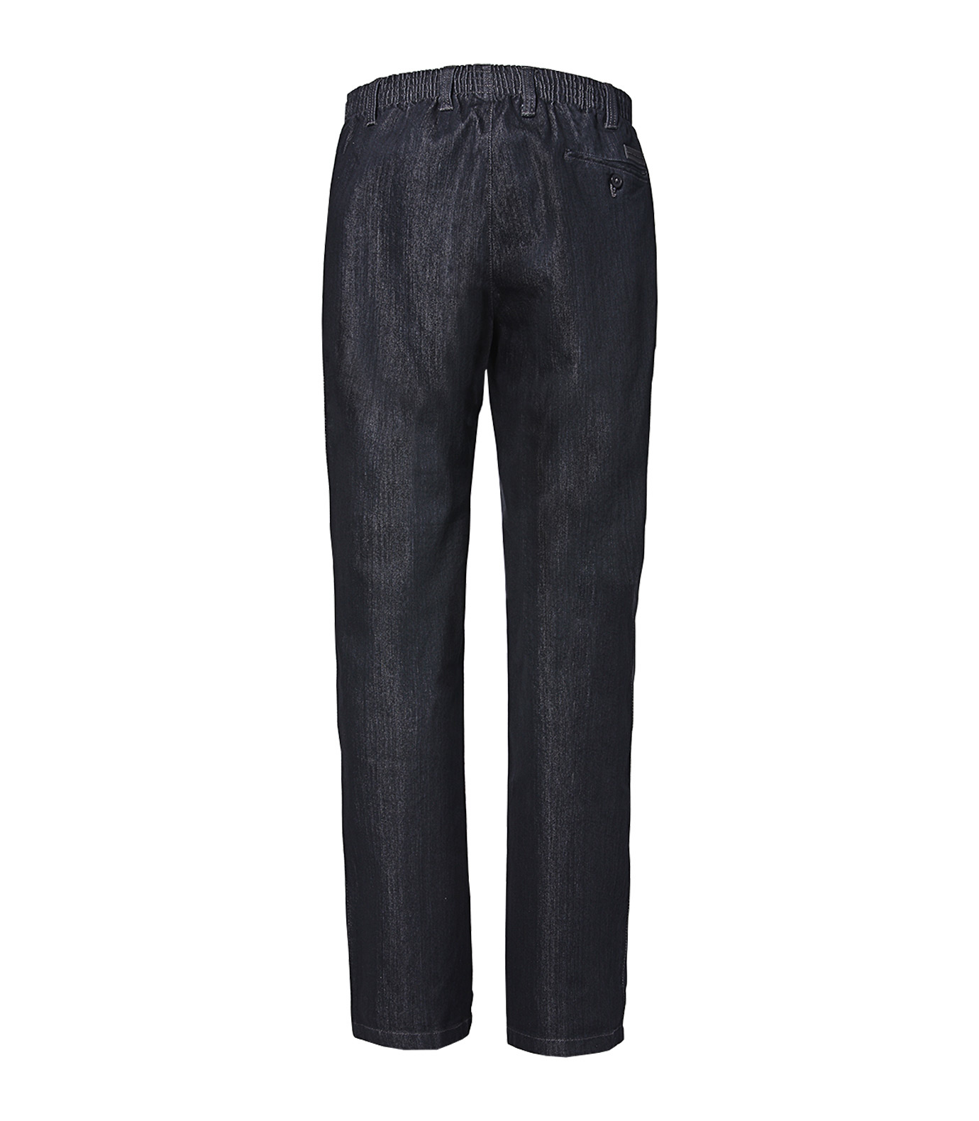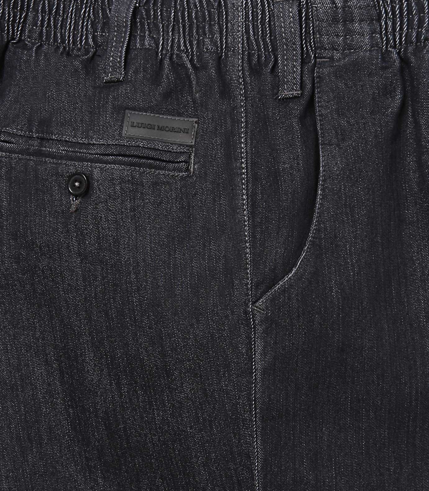 Jeans mit Rundum-Gummibund aus angenehmer Baumwolle und Polyester. Zwei seitliche Eingrifftaschen und eine verschließbare Gesäßtasche. Ideal für Rollstuhlfahrer und Stomaträger. Sehr bequeme Passform und dank Elasthan-Anteil leicht an- und auszuziehen. Waschbar. Aus der Amberg-Serie von Luigi Morini.