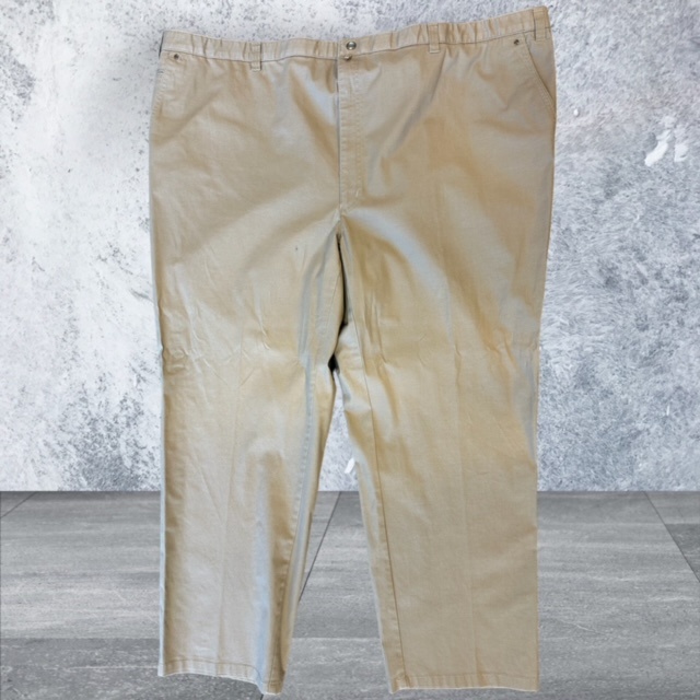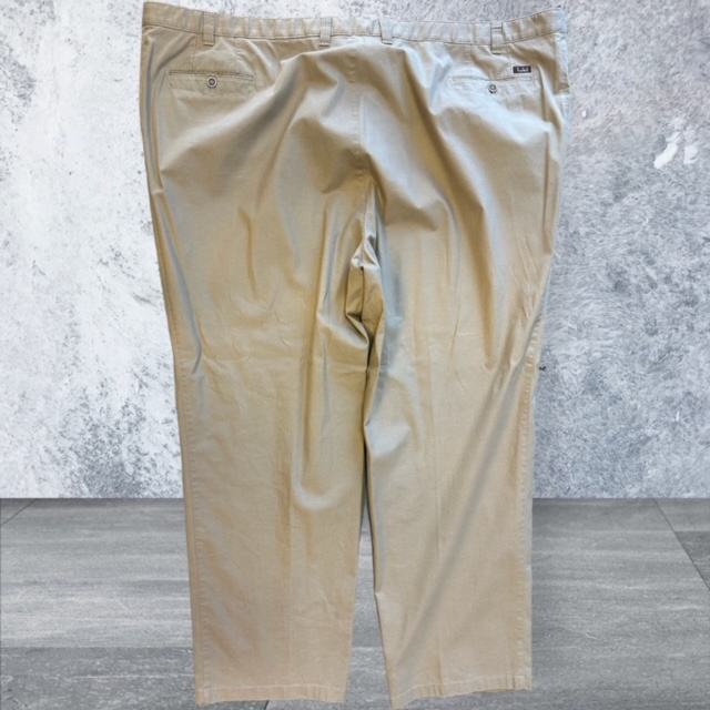 Eine Hose der Marke Luigi Morini in der Farbe Sand. Bitte beachten Sie, dass es sich um ein hohes Modell handelt (auf dem Bauch getragen).