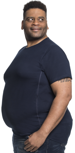 • Auch im unteren Bereich wurde das Alca T-Shirt individuell und stylisch für den Plus-Size-Mann angepasst.