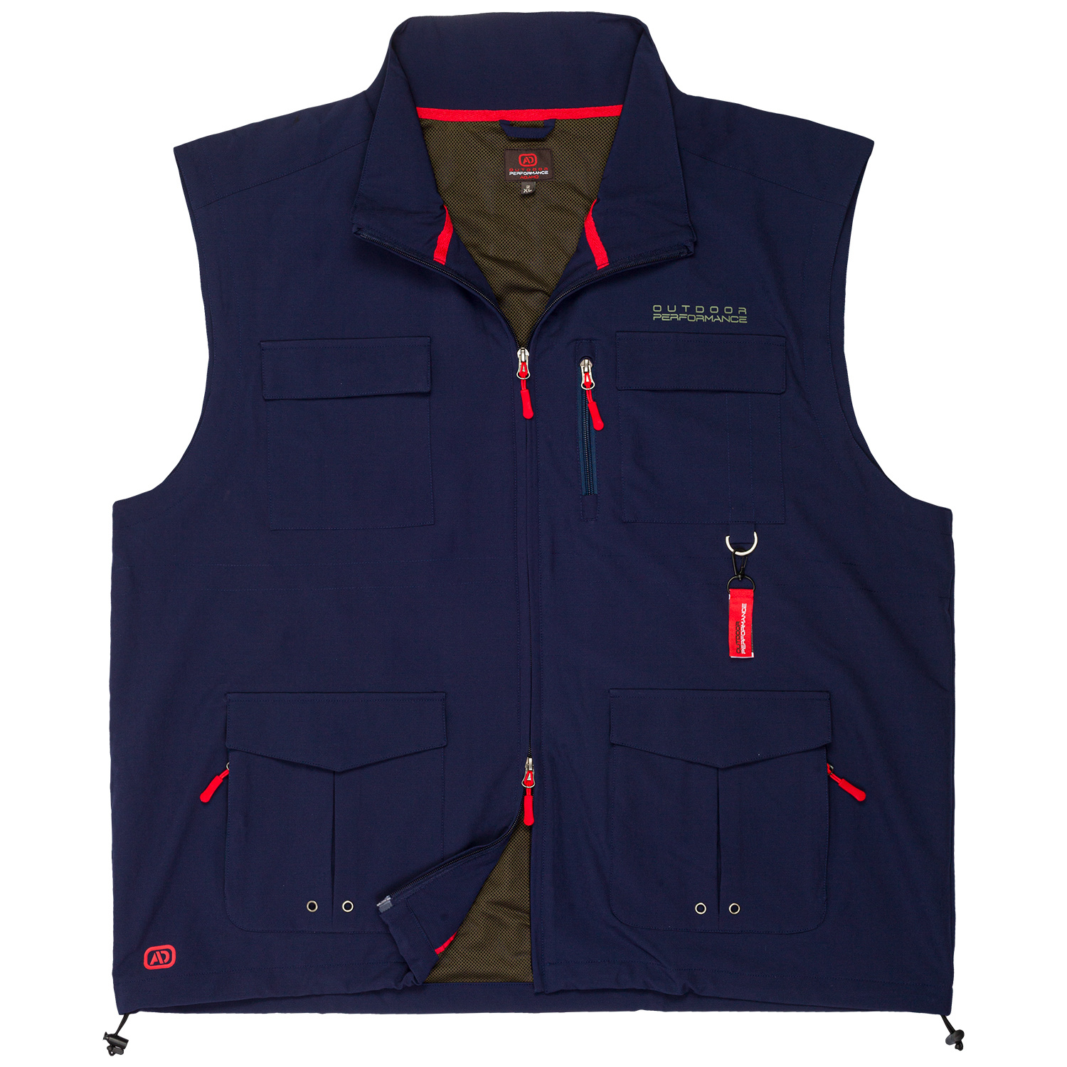 Eine multifunktionale Outdoorweste, ausgestattet mit vielen Taschen. Ideal für Wanderer, Angler und Leute, die gerne viel mitnehmen.
