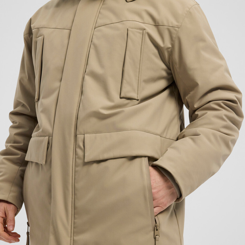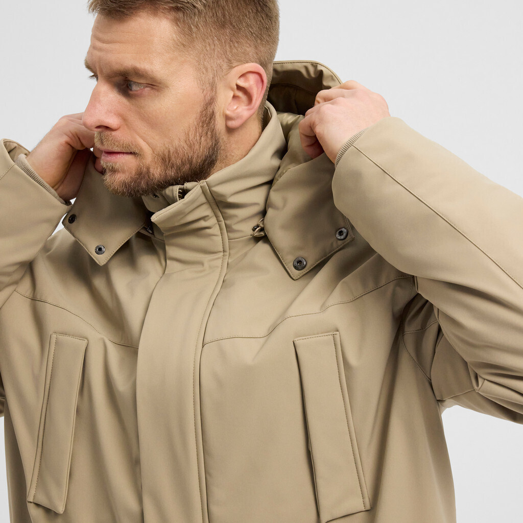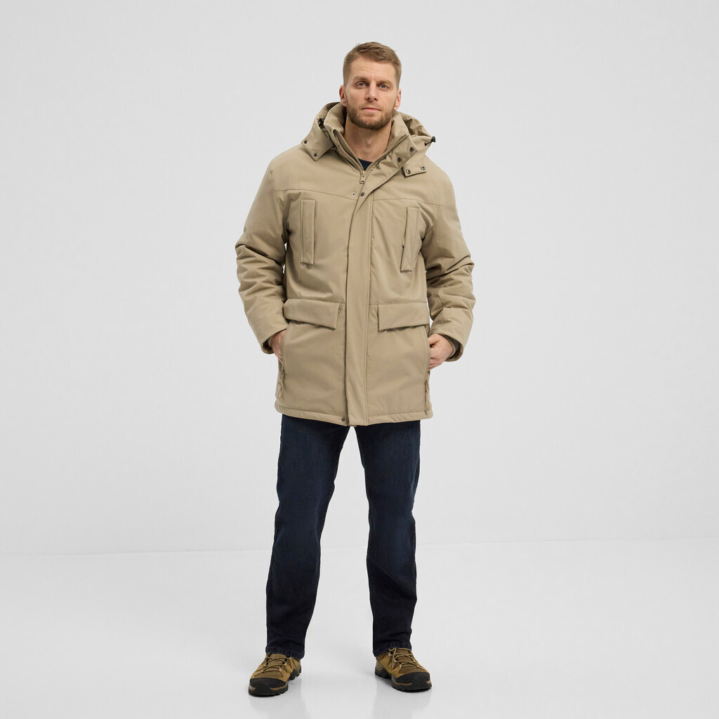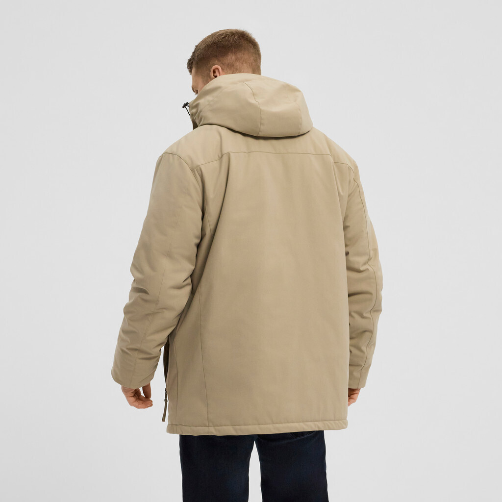 Eine schöne und coole Parkajacke der Marke North56 in der Farbe Dark Sand. Der Parka ist mit verschiedenen Eingriff- und Reißverschlusstaschen vorne und innen ausgestattet. Der Parka ist außerdem mit einer abnehmbaren Kapuze ausgestattet.