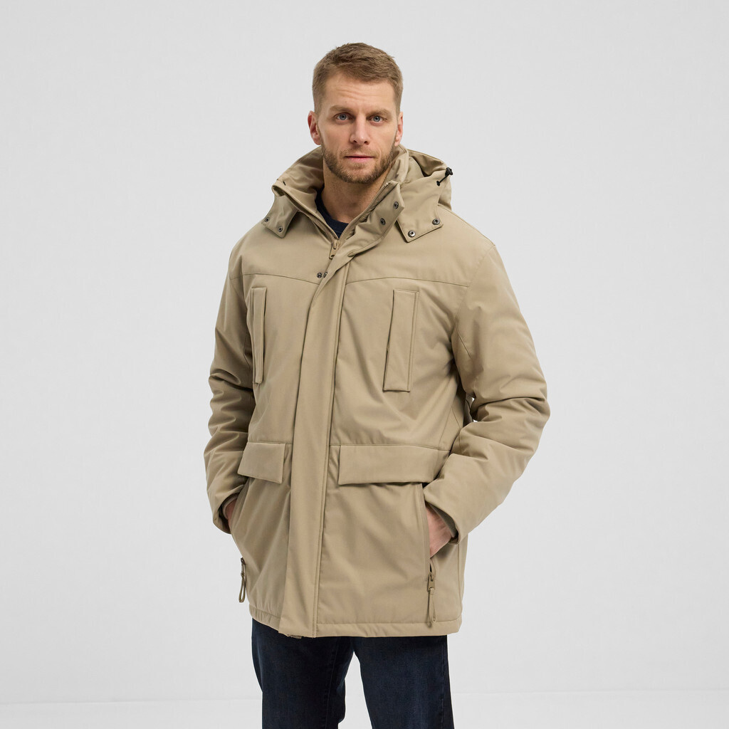 Eine schöne und coole Parkajacke der Marke North56 in der Farbe Dark Sand. Der Parka ist mit verschiedenen Eingriff- und Reißverschlusstaschen vorne und innen ausgestattet. Der Parka ist außerdem mit einer abnehmbaren Kapuze ausgestattet.