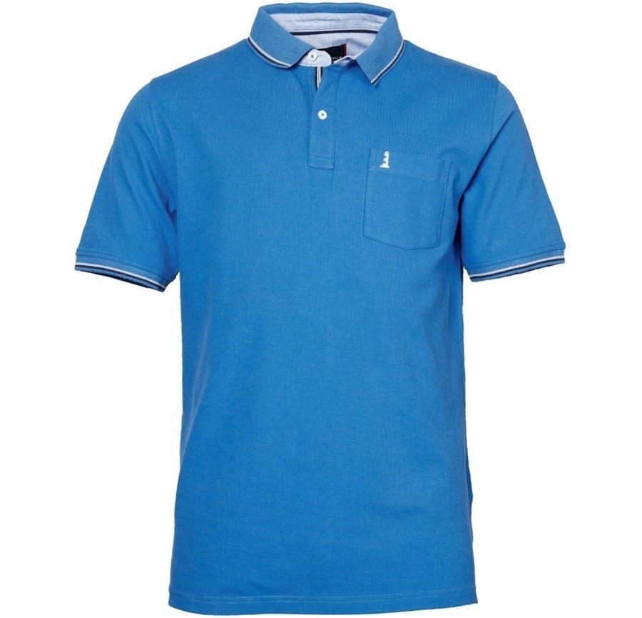 Ein lässiges Polo in der Farbe Blau, Polo hat eine Brusttasche.