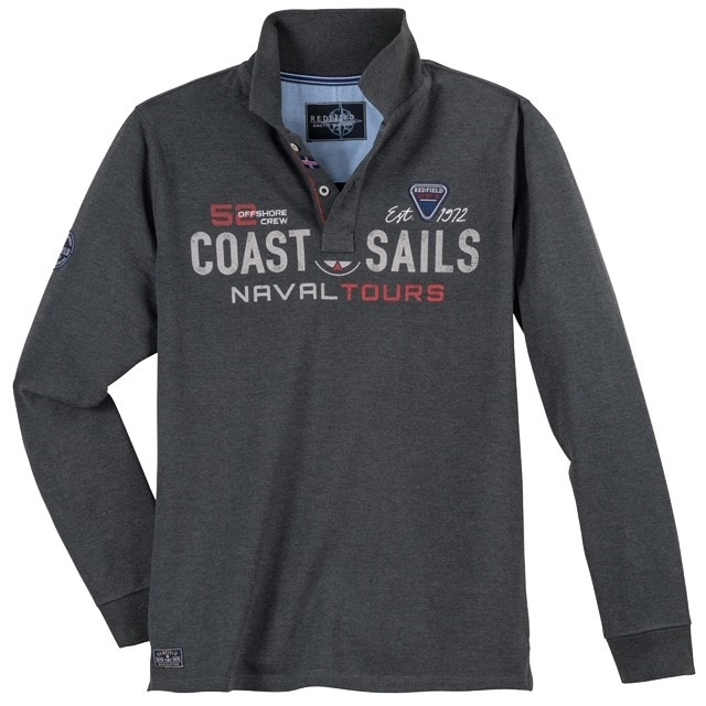 Ein lässiges Langarm-Poloshirt der Marke Redfield in Anthrazit mit verschiedenen Prints.