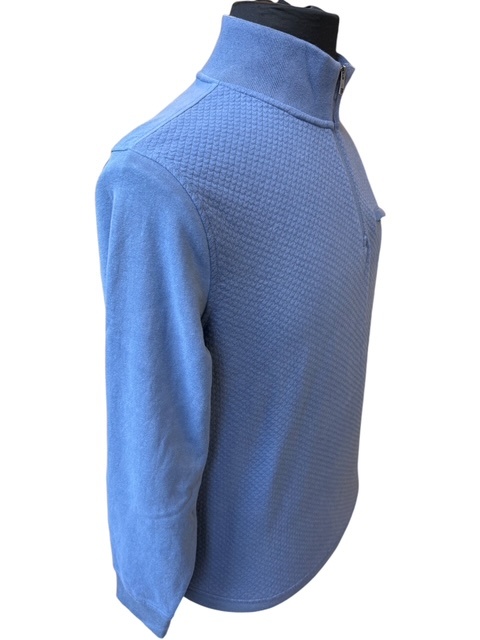 Ein moderner Zip-Pullover der Marke Pre End in der Farbe Himmelblau.