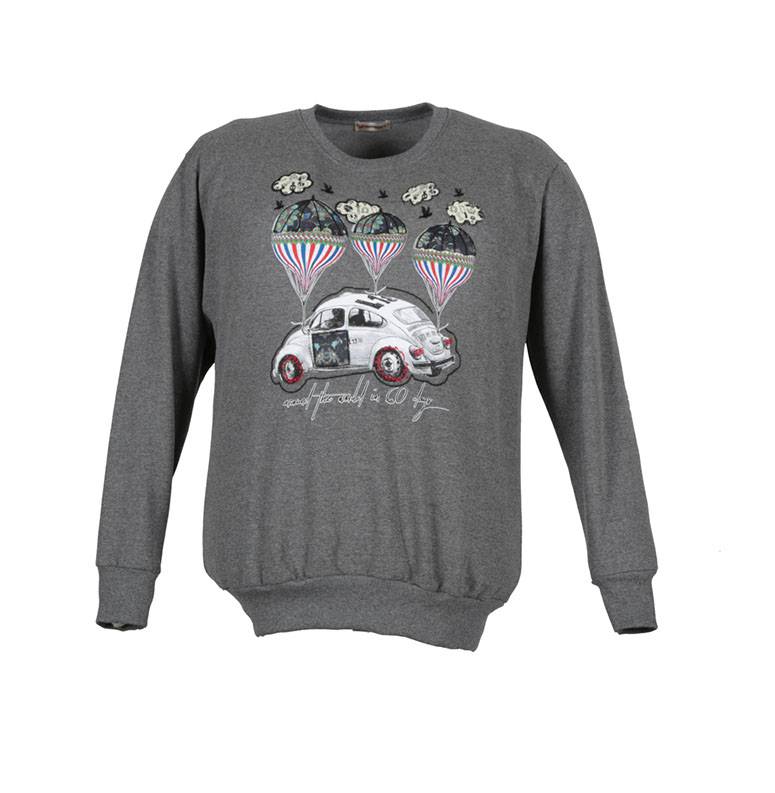 Schöner Pullover mit schönem, modernem Druck. Rundhalsausschnitt. Elastischer Bund und Ärmel. Farbe: Grau