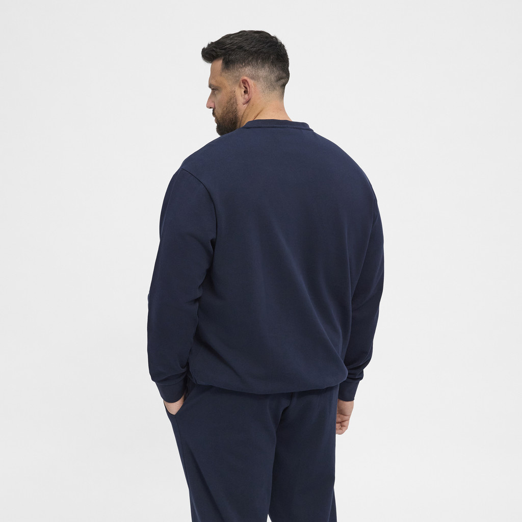 Der Rundhalspullover aus 100 % Baumwolle in Marineblau ist die perfekte Mischung aus modernem Stil und klassischem Komfort. Die moderne Passform sorgt für einen eleganten und stilvollen Look, während das klassische Design zeitlose Attraktivität verleiht.