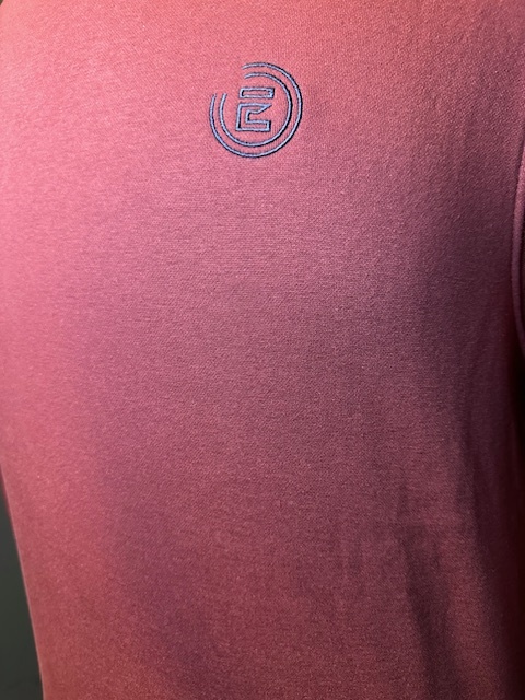 Ein warmer Pullover der Marke Maxfort in der Farbe Burgunderrot. Der Pullover hat ein kleines Logo auf der linken Vorderseite.
