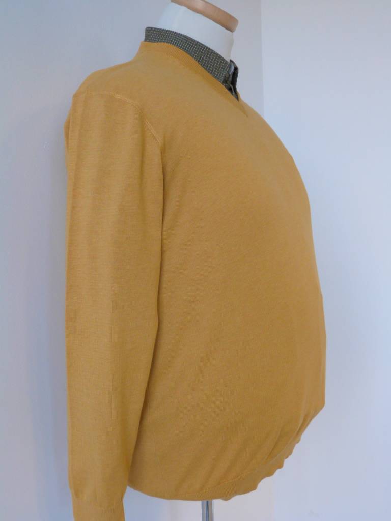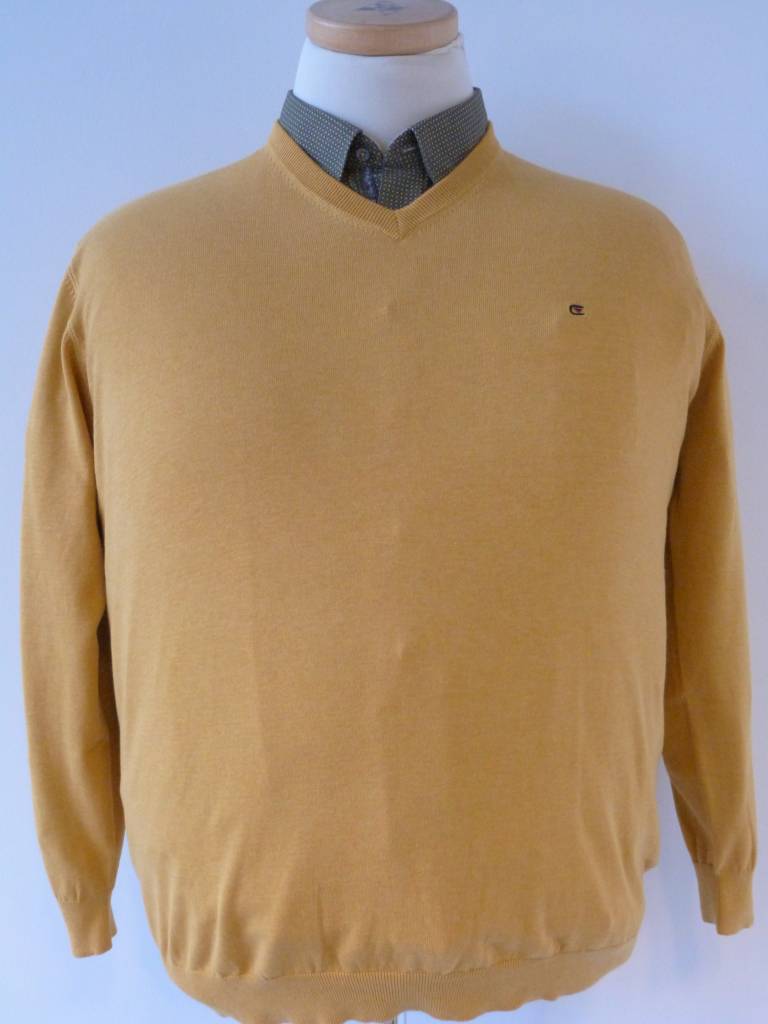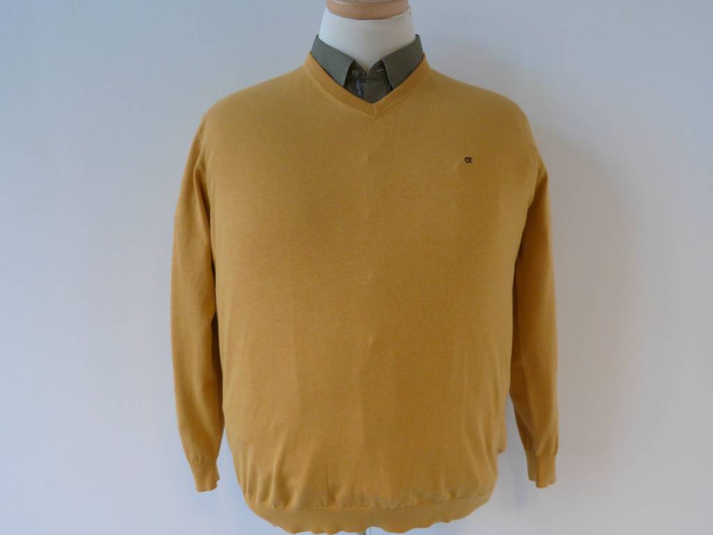 V-Ausschnitt-Pullover der Marke Casa Moda in der Farbe Gelb. Der Pullover hat ein kleines Logo auf der Vorderseite.