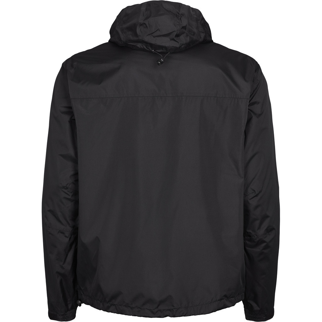 Ein schwarzer Regenmantel mit Kapuze der Marke North Latitude. Die Jacke ist wasser- und winddicht. Die Jacke besteht aus atmungsaktivem Material, sodass Schweiß nicht in der Kleidung verbleibt, sondern gut abgeleitet wird.