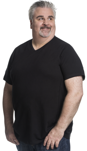 • Auch im unteren Bereich wurde das Alca T-Shirt individuell und stylisch für den Plus-Size-Mann angepasst.