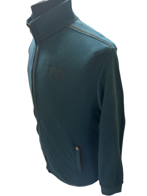 Eine moderne Sweatjacke der Marke Fellows United in der Farbe Petrolblau. Jacke hat 2 Taschen.
