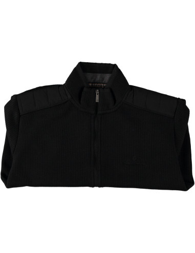 Eine moderne warm gefütterte Weste der Marke Fellows United in Schwarz/Anthrazit, die Weste hat Seitentaschen mit Reißverschluss und eine Reißverschlusstasche am Ärmel.