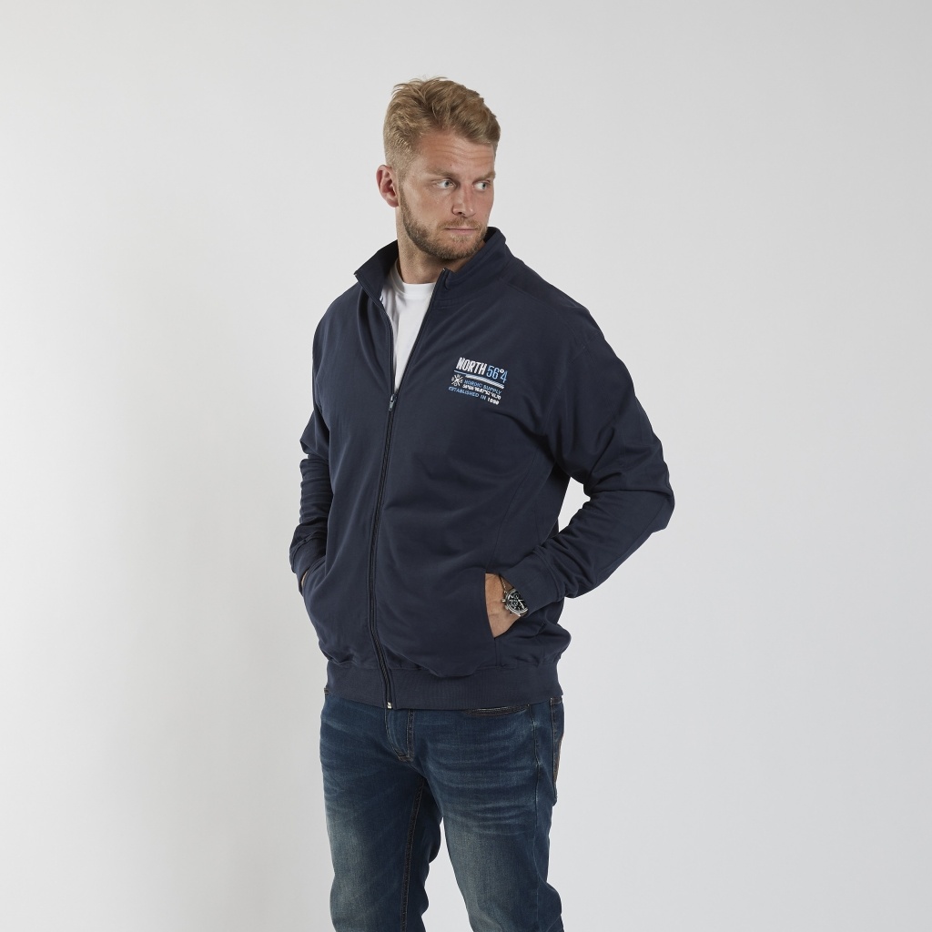 Eine sportliche Strickjacke der Marke North56 in der Farbe Navy. Die Weste hat 2 Taschen und ist auf der linken Vorderseite mit einem Logo versehen. Bitte beachten Sie, dass sie verfärbt ist, daher der Preis. Für diesen Artikel ist keine Rückgabe möglich!