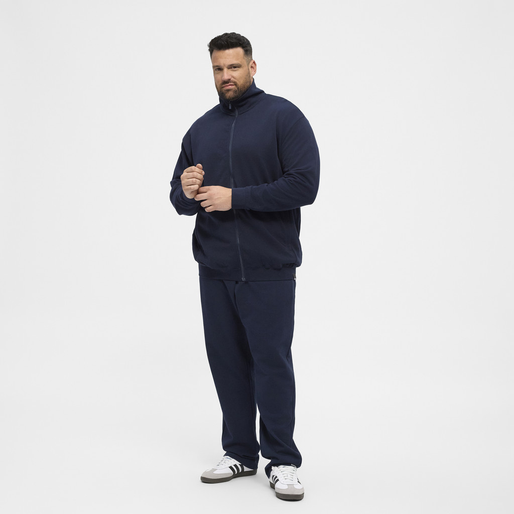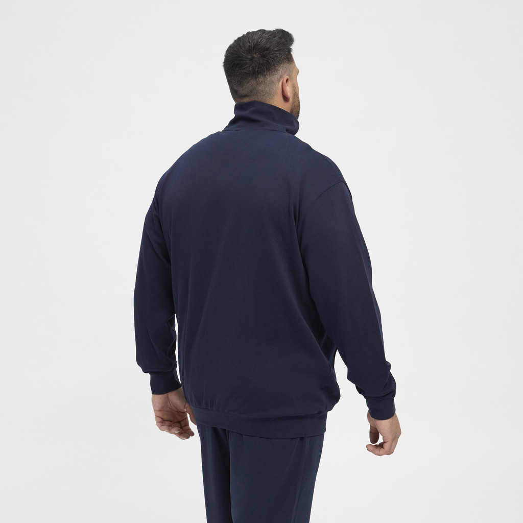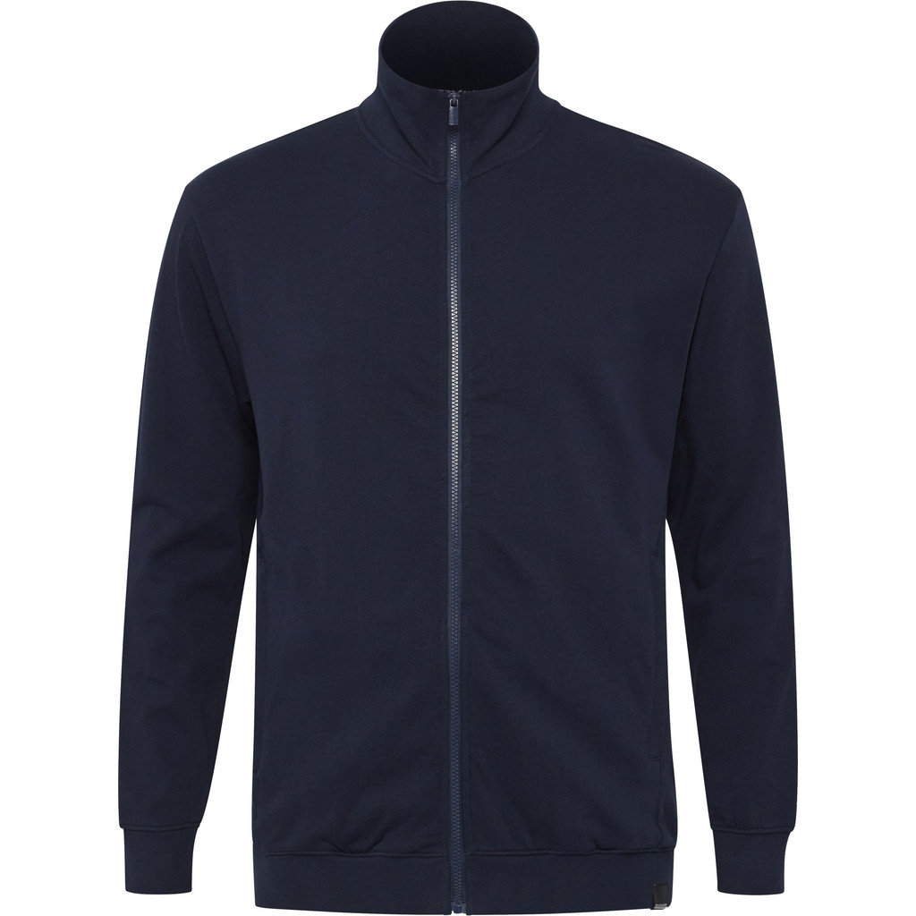 Eine einfache Sweatjacke in Marineblau, Jacke hat 2 Taschen.