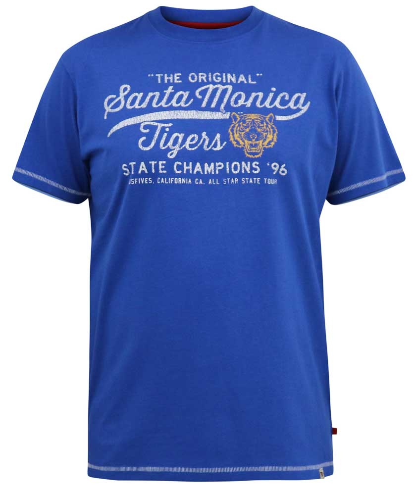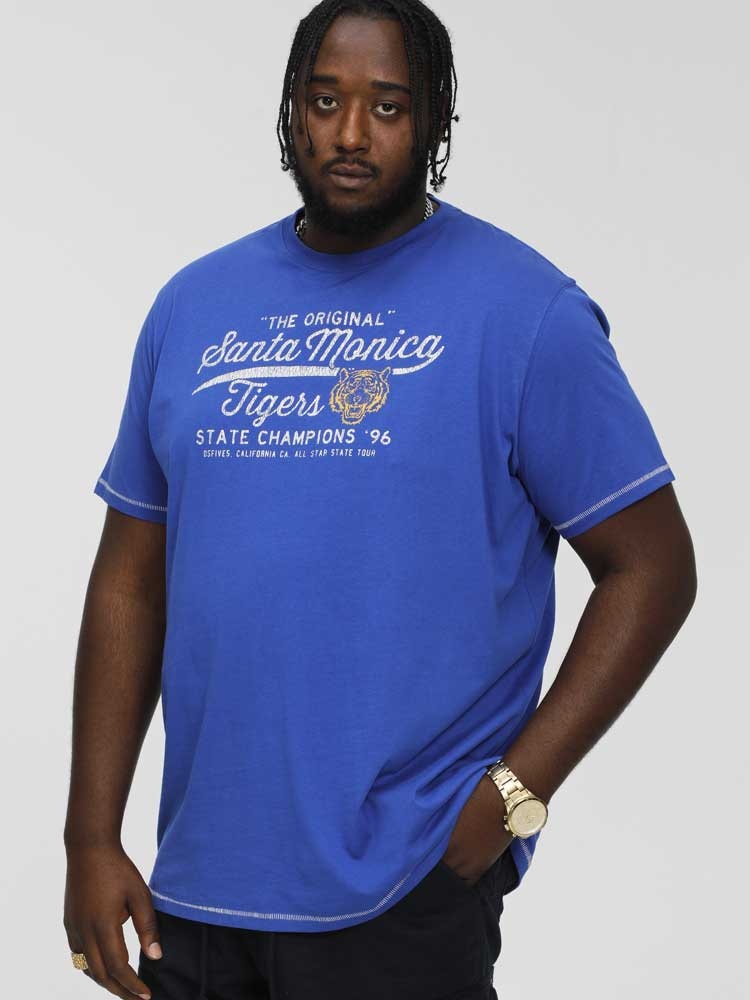 Ein Sommer-T-Shirt in Königsblau mit dem Text „Santa Monica Tigers“