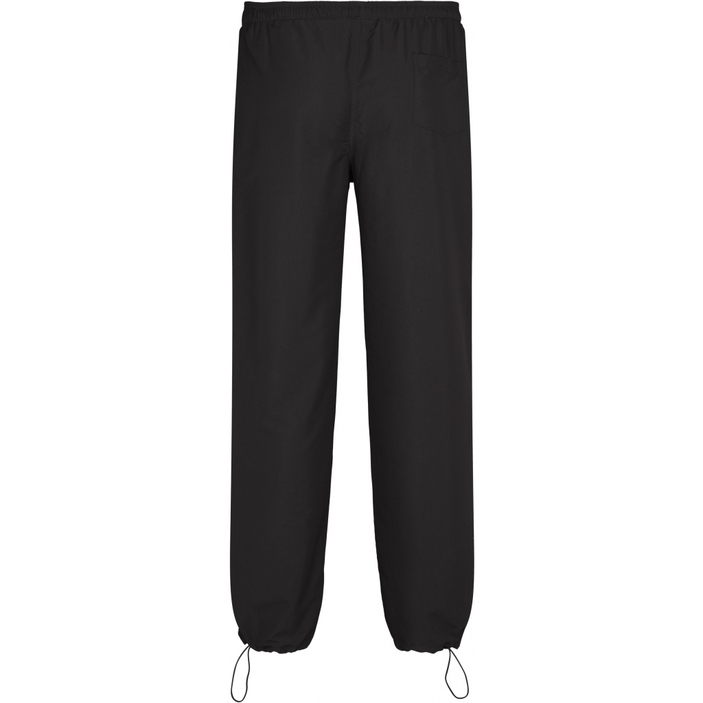 Eine Trainingshose der Marke North 56 in der Farbe Schwarz. Die Hose hat einen Gummibund und einen Kordelzug an den Knöcheln. Die Hose hat Seitentaschen und eine Gesäßtasche.