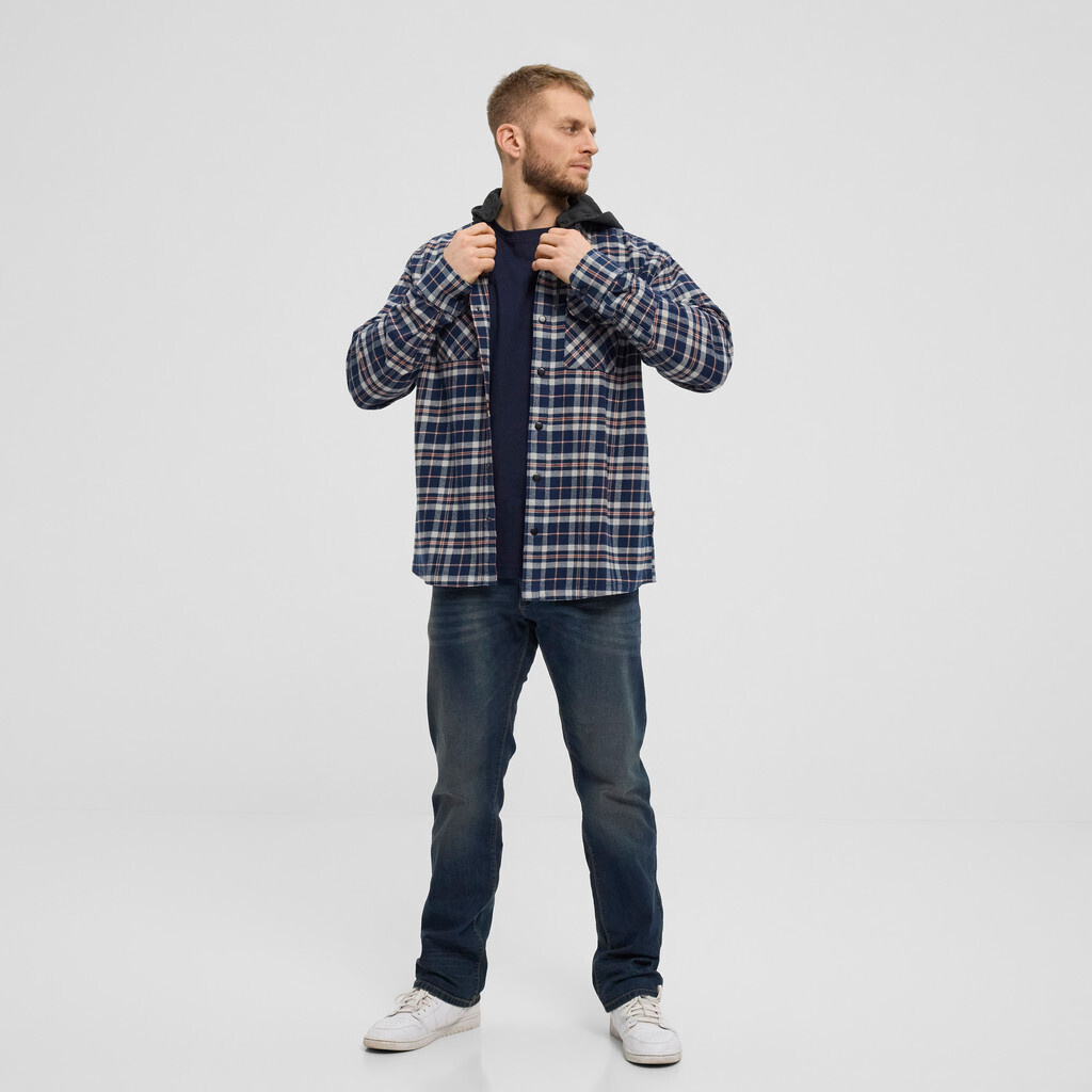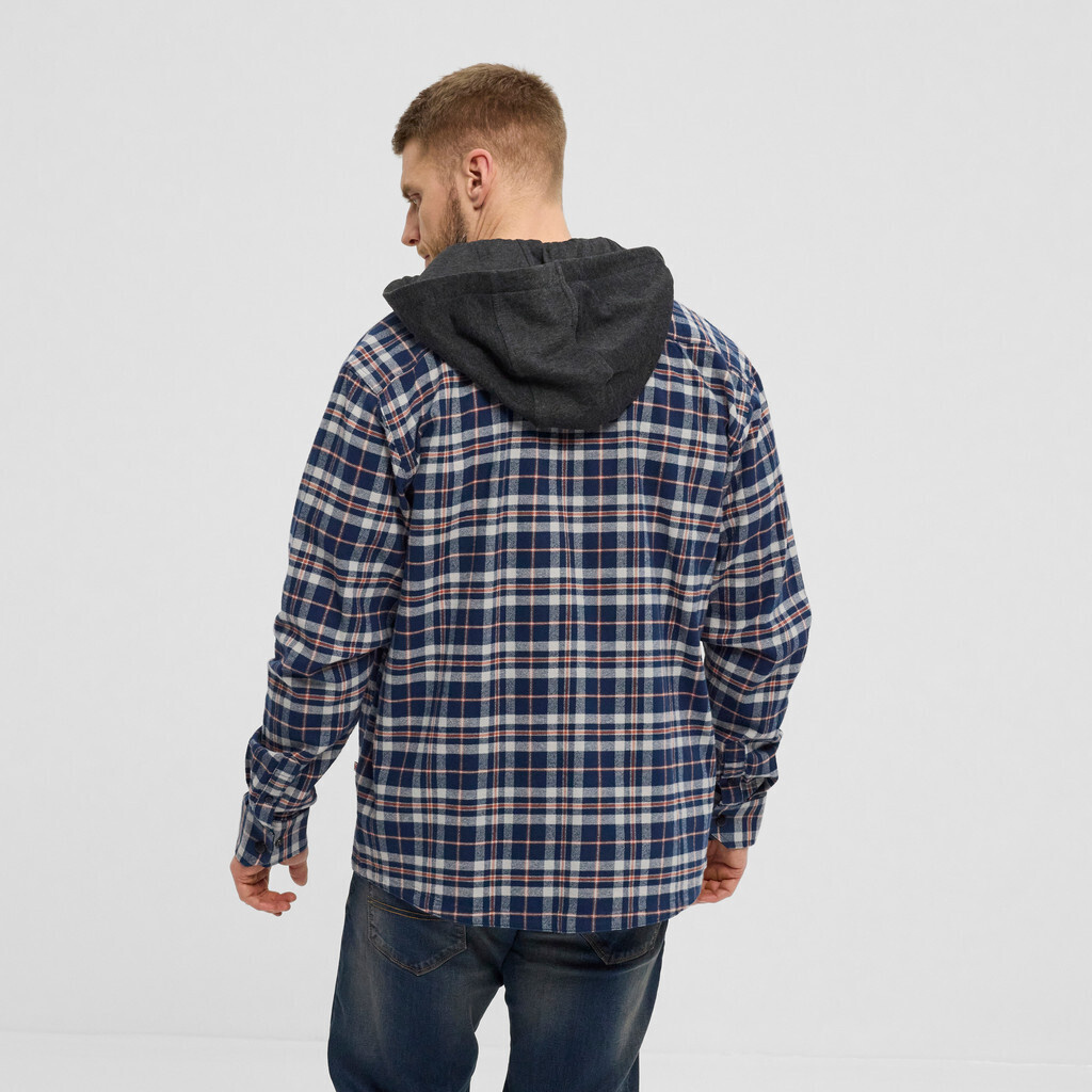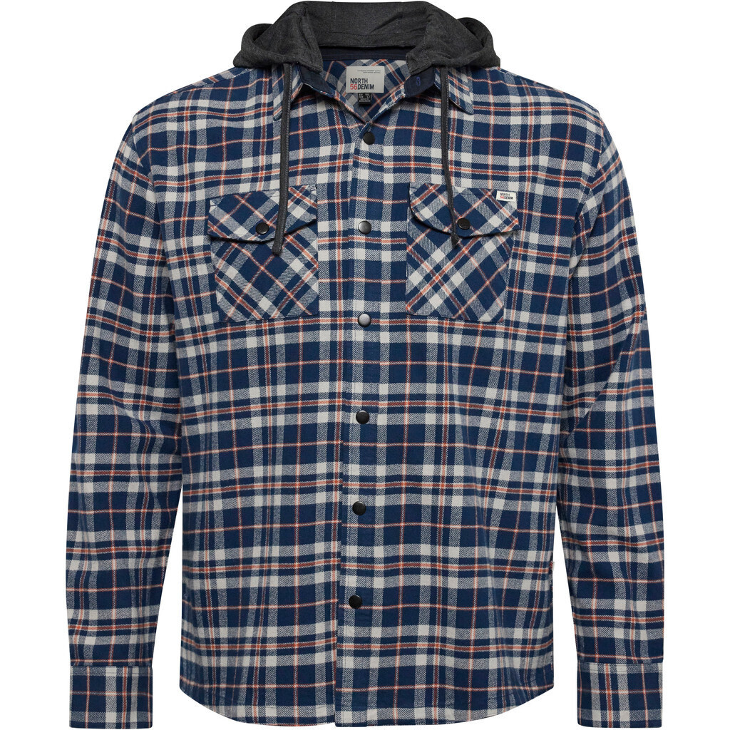 Ein modernes Oversize-Hemd von North56Denim im Karo-/Blockmuster. Das Hemd hat eine Kapuze und 2 Brusttaschen auf der Vorderseite.