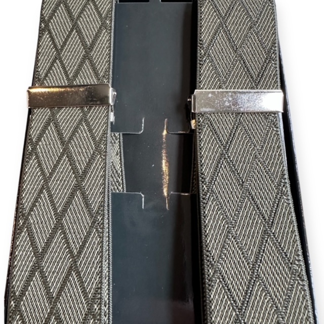 Grüne Hosenträger mit grobem Rautenmuster. Die Hosenträger sind mit breiten, stabilen Clips ausgestattet, damit Ihre Kleidung am richtigen Platz bleibt.