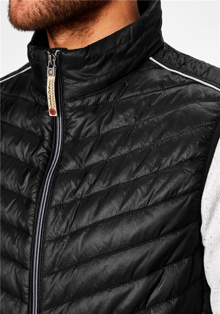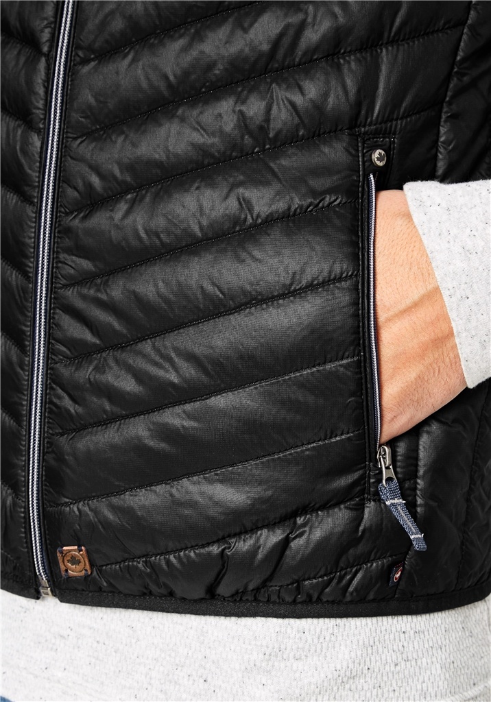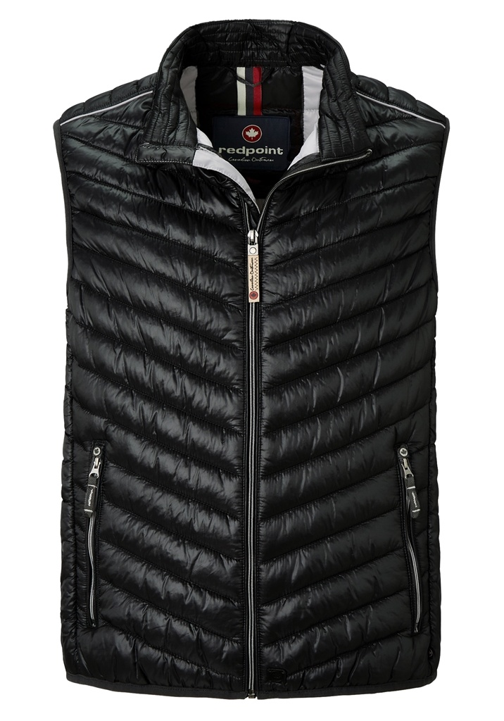 A modern body warmer in black from the Redpoint brand, the body warmer has 2 pockets with a zipper.