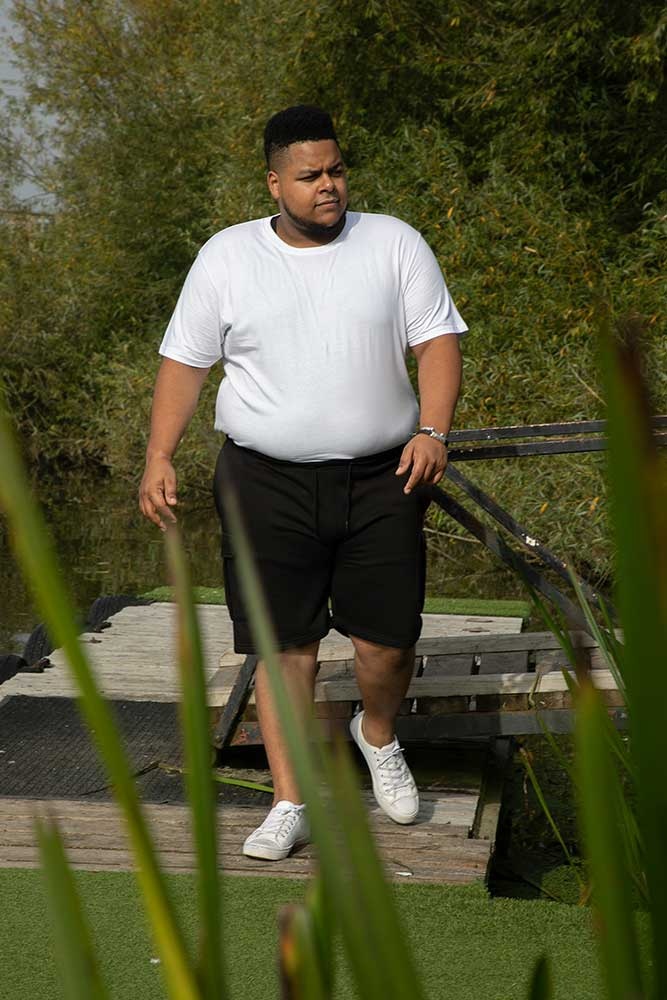 A black fabric cargo pant, a lovely pair of summer pants with lots of pockets.