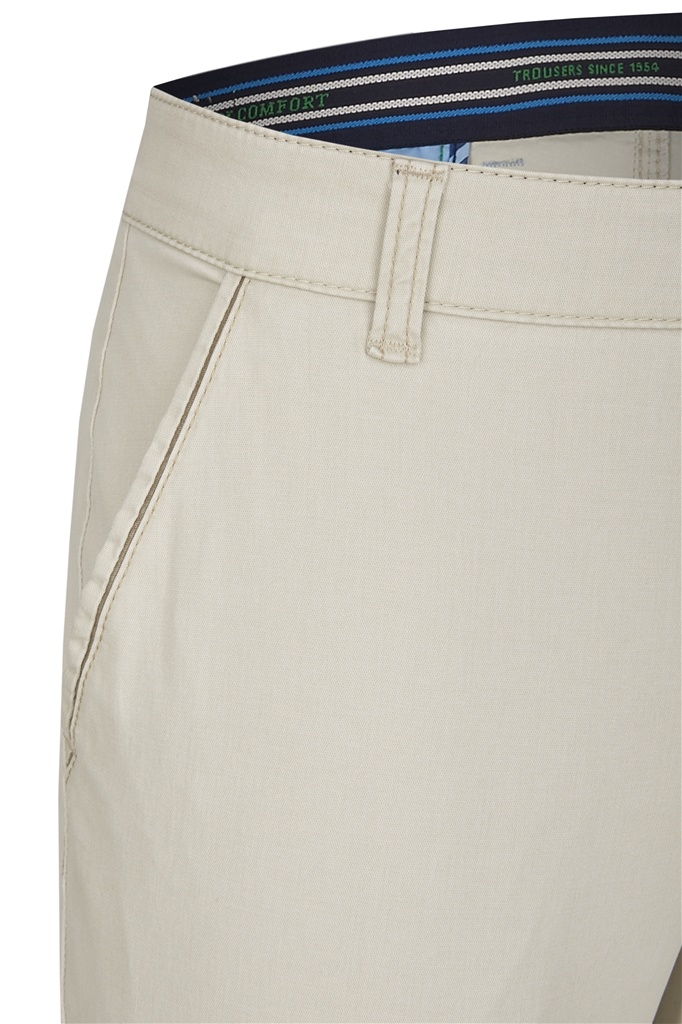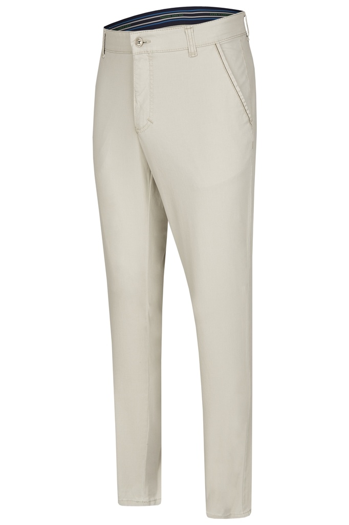 Comfortable flat-front trousers with elastic comfort waistband and shirt stopper. The subtle contrast on the side and back pockets gives the trousers a sporty touch. Made of a high-stretch cotton broken twill.