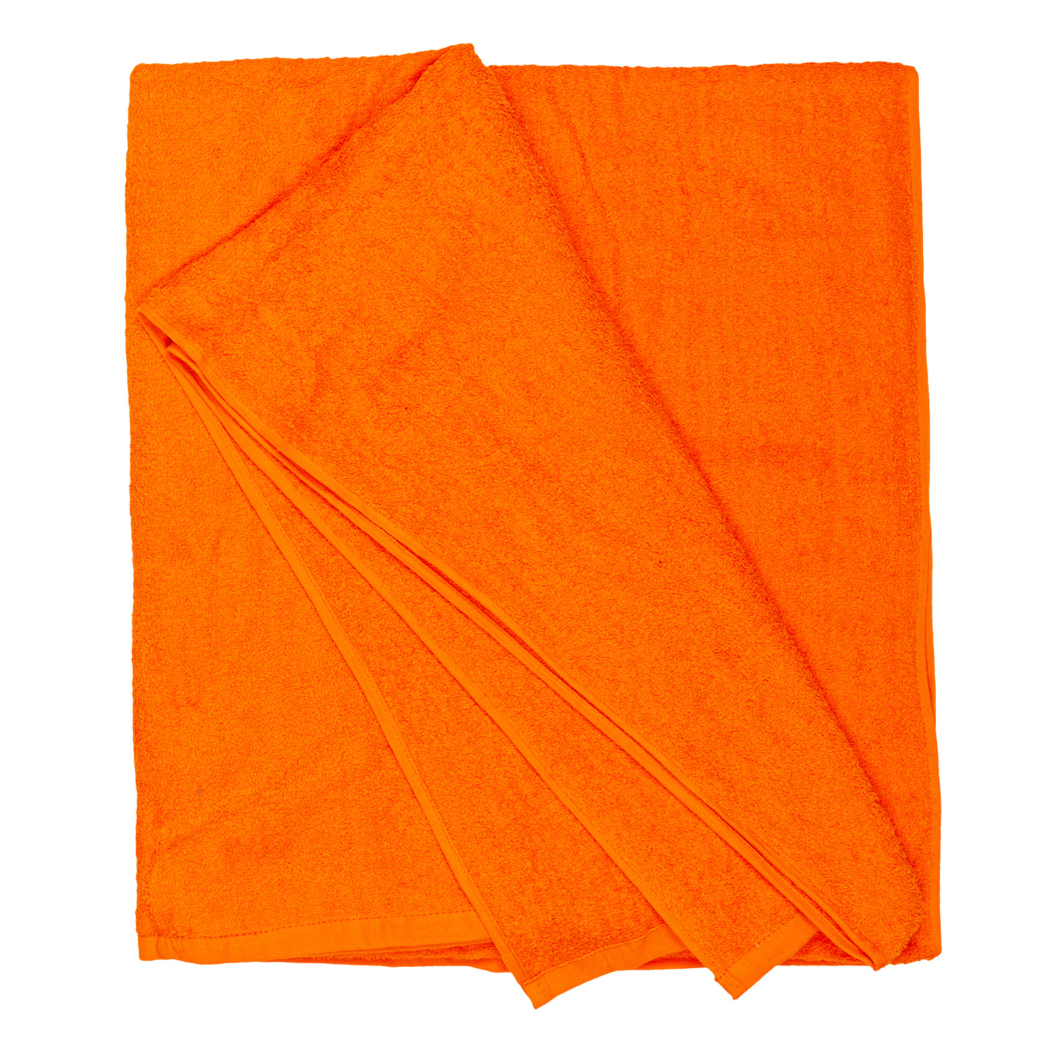 XXL towel, sauna towel, beach towel with a hanger at the top and bottom in the color orange. 100% cotton, terry cloth 400 g/m².