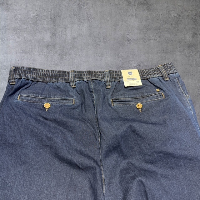 The waistband of Luigi Morini trousers is slightly stretched when measuring (approx. 10cm). When the waistband is completely pulled out, at least 6 cm is added.
