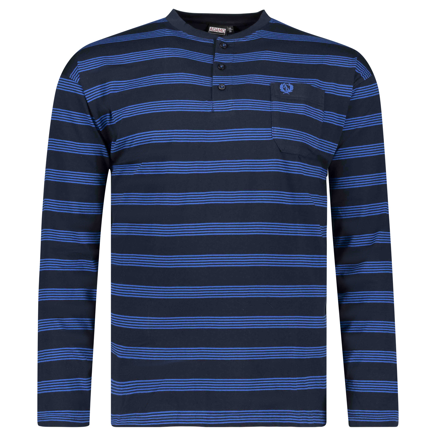 Serafino long pyjamas - Round neck top with button band and chest pocket, striped - Long, plain trousers with back pocket - 100% cotton, single jersey, 160 g/m2