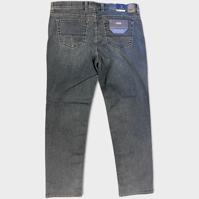 A cool summer denim pants from the brand Pioneer, pants are a 5 pocket model and have a light wash color on the legs. Pants are from megaflex, so have extra stretch.