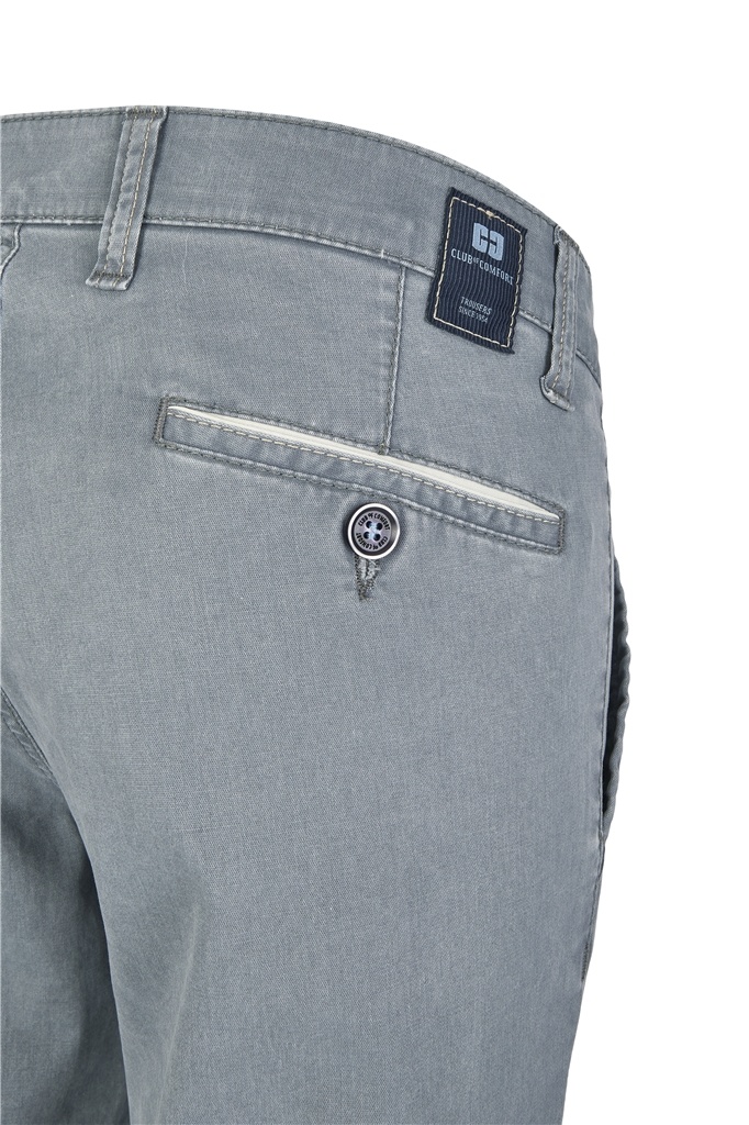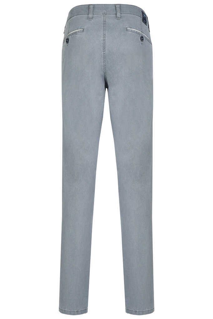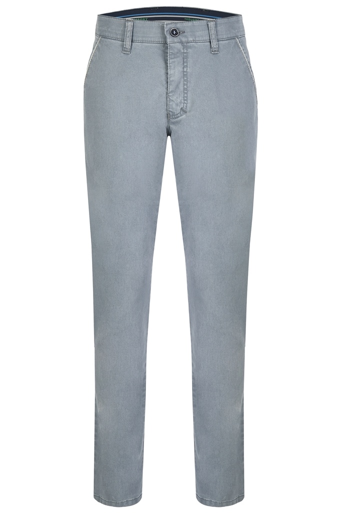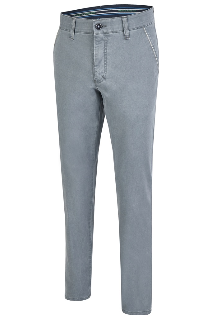 Comfortable flat-front trousers with elastic comfort waistband and shirt stopper. The subtle contrast on the side and back pockets gives the trousers a sporty touch. Made of a high-stretch cotton broken twill.