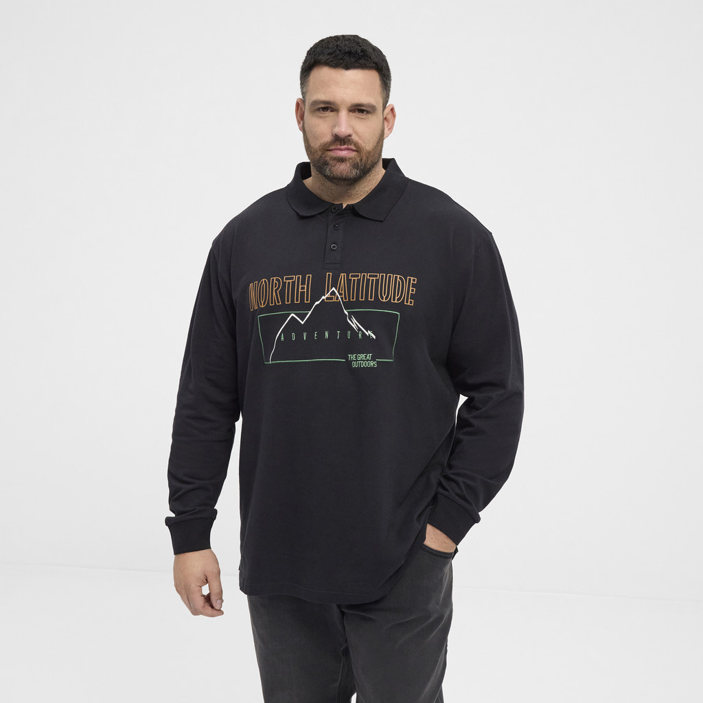 Long-sleeved polo shirt with an outdoor-inspired print and a classic collar. Made of soft stretch piqué for extra freedom of movement and comfort. A relaxed choice with a striking look.