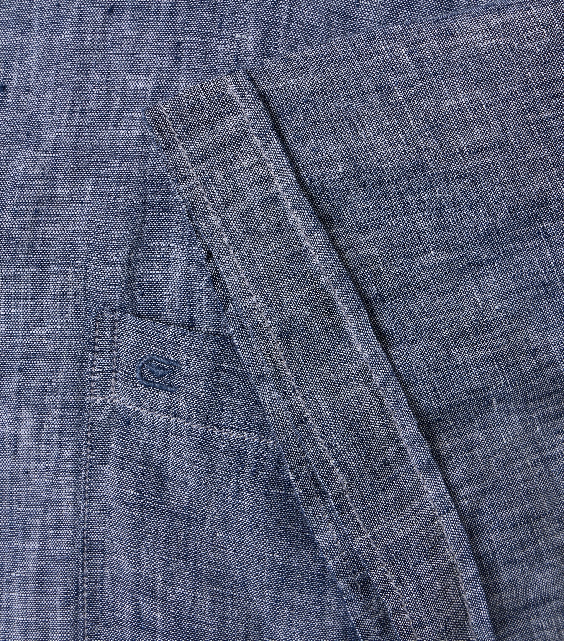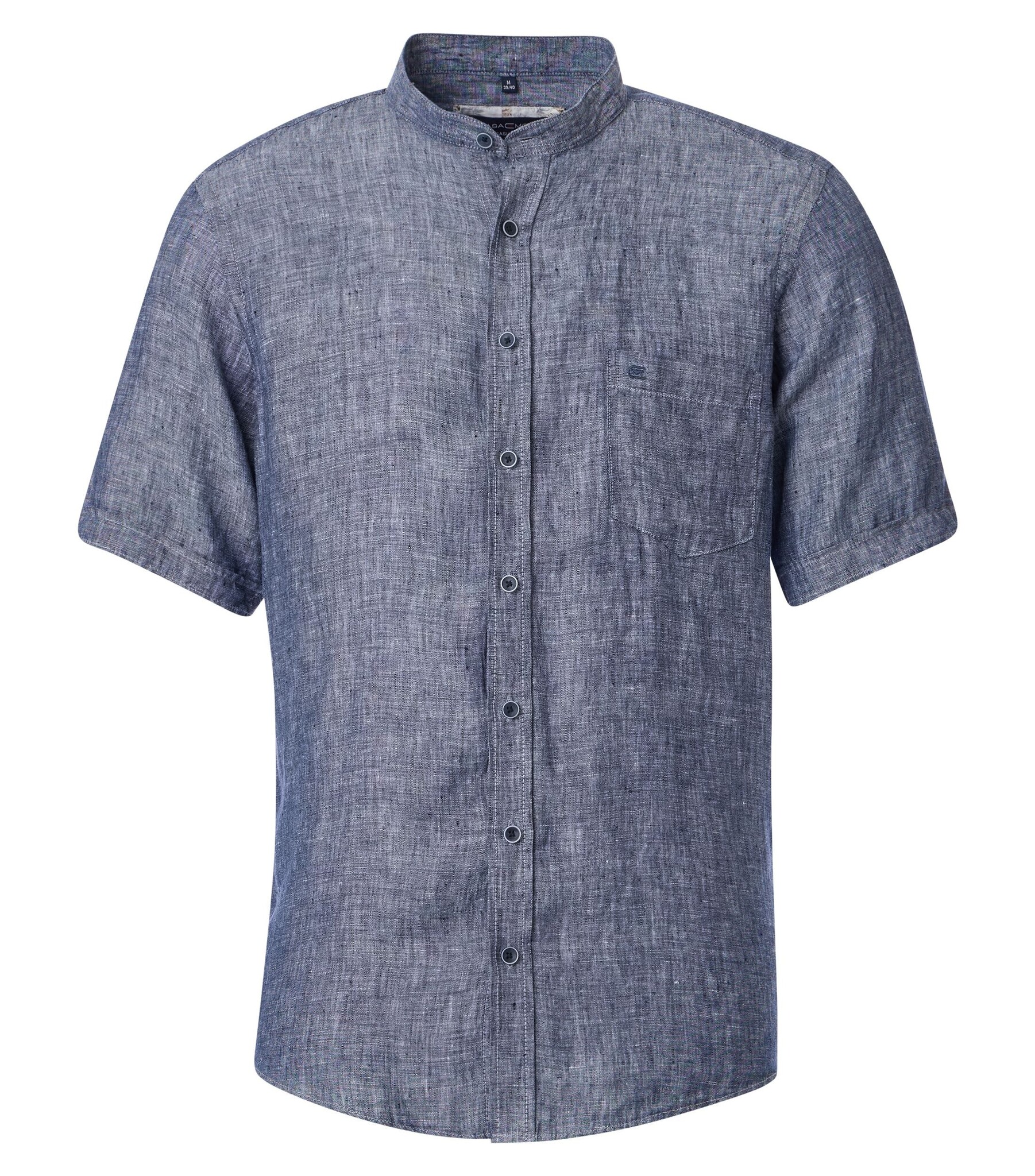 A lovely summer shirt in 100% linen in blue with an open collar, the shirt has a breast pocket.