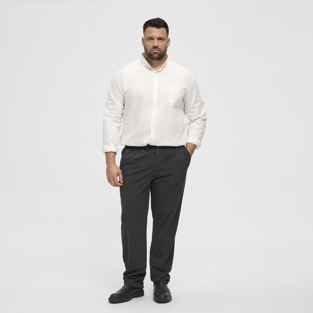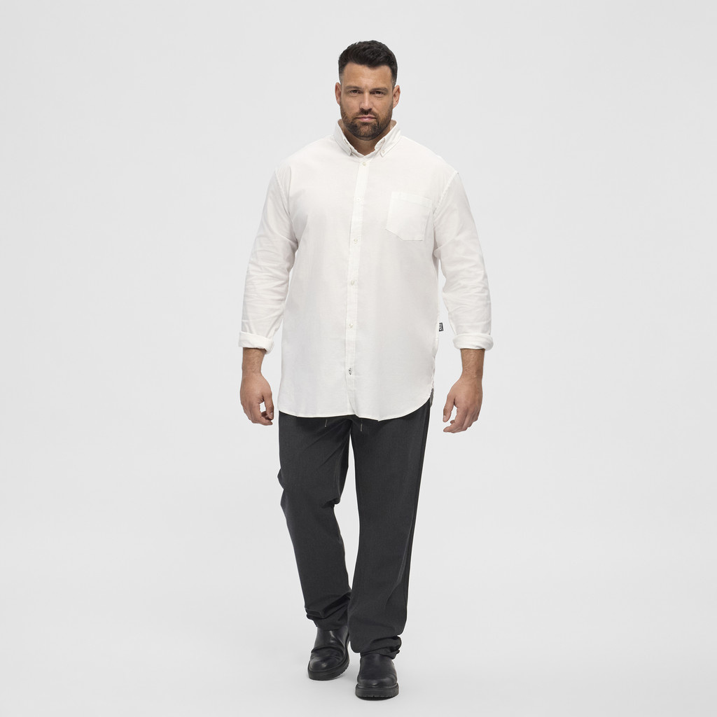 An Oxford shirt with long sleeves in white from the North Latitude brand, the shirt has a chest pocket on the left side and has button-down buttons in the collar.