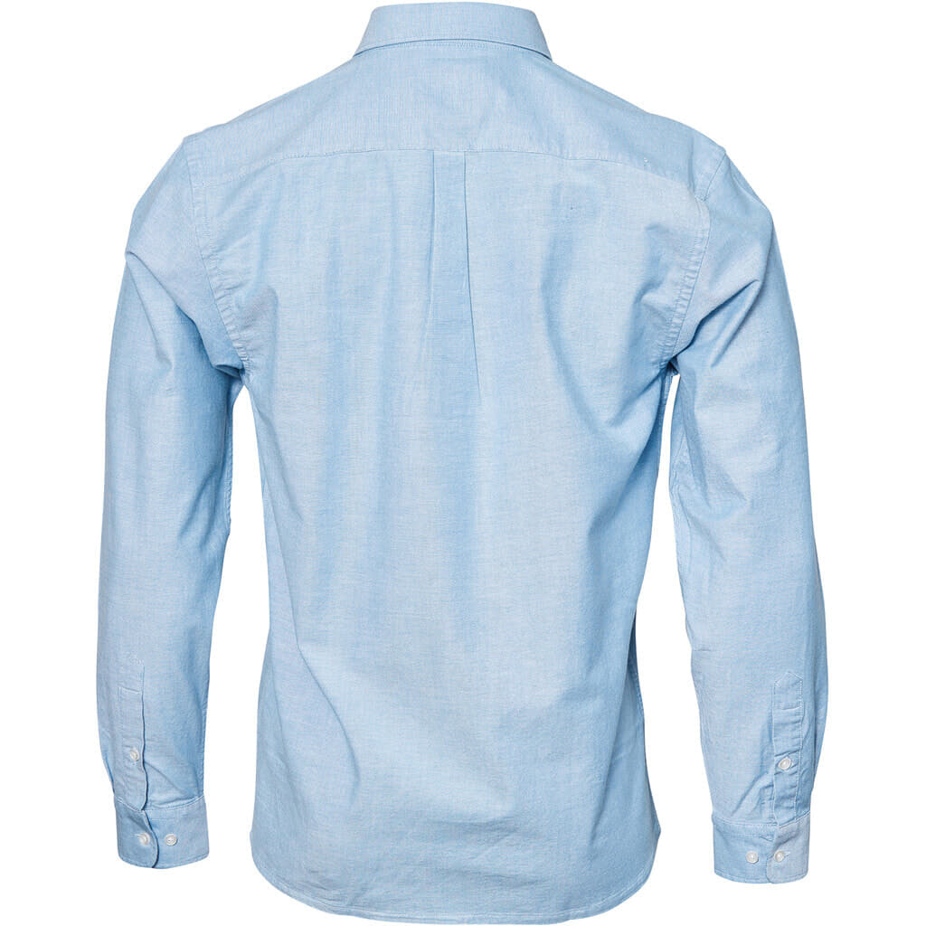 An Oxford long-sleeved shirt in light blue from the North Latitude brand, the shirt has a chest pocket on the left side and has button-down buttons in the collar.