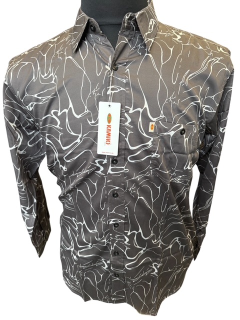 A casual long-sleeved shirt from Kamro in black and white. The shirt has a chest pocket.