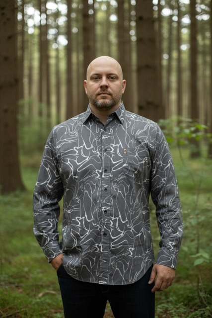 A casual long-sleeved shirt from Kamro in black and white. The shirt has a chest pocket.