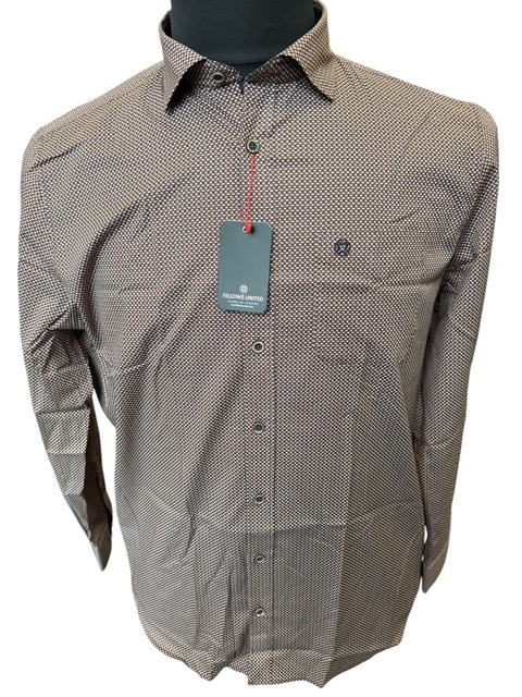 A modern long-sleeved shirt from the Fellows United brand in brown/blue, the shirt has a chest pocket.