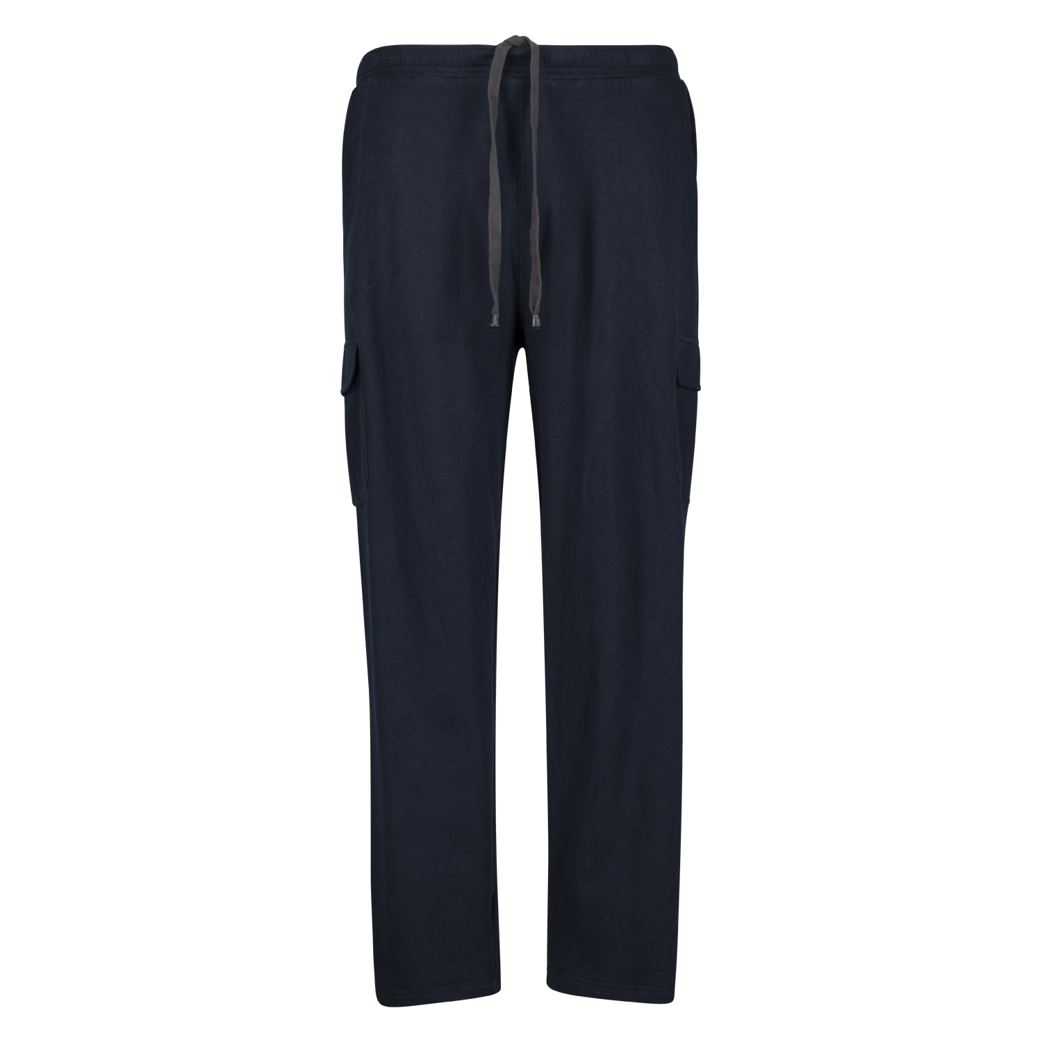 A basic pair of jogging pants with cargo pockets on the side of the pants in navy from the Adamo brand.