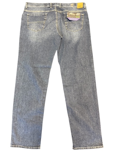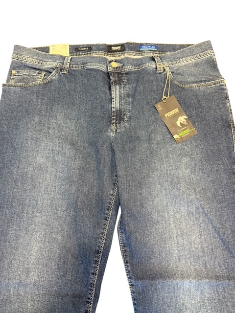 A pair of jeans pants in the style light stone wash by the brand Pioneer. Pants are equipped with 2 slit pockets and 2 back pockets. Pants are equipped with megaflex.