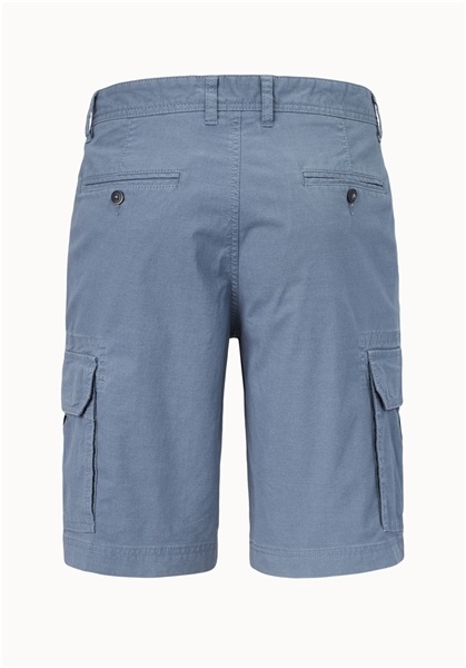 Een cargo bermuda in de kleur blue, broek heeft steekzakken en cargo zakken aan de zijkant van de bermuda.