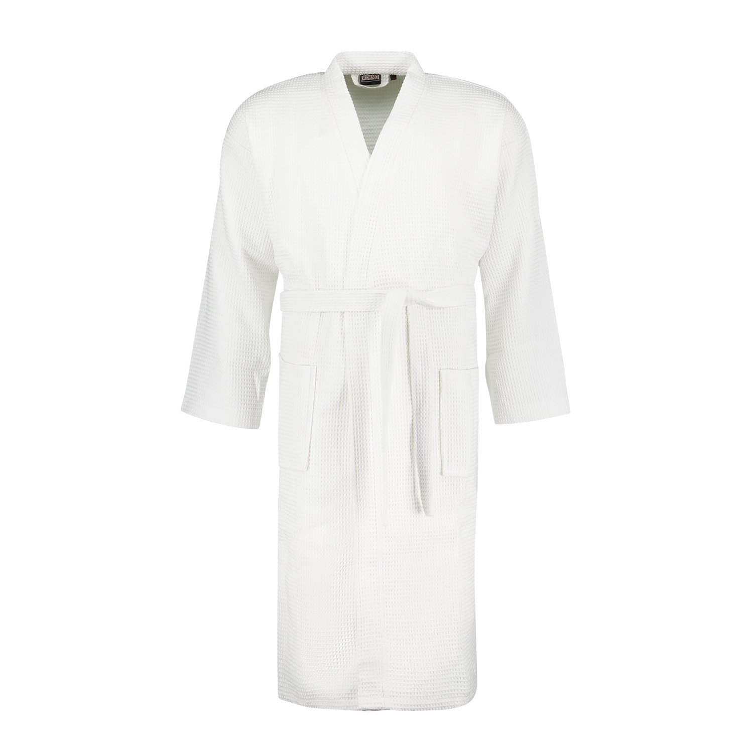 Badjas met 2 zakken in de kleur wit met wafelpiqué patroon, 100% katoen 275 g/m².