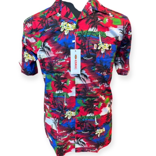 Een moderne Hawaii shirt in de kleur rood van het merk Kamro, hemd is voorzien van een borstzakje.