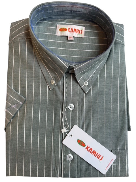 Een moderne casuele overhemd korte mouw in de kleur light green ( met lengte streep ), hemd is voorzien van een borstzakje.