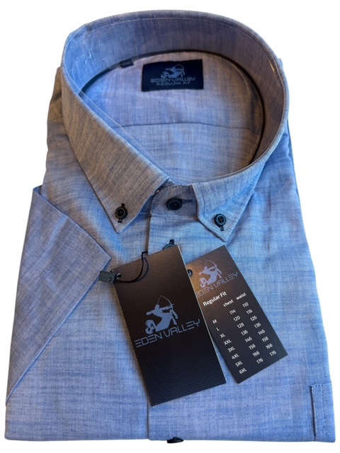 Een overhemd korte mouw van het merk Eden Valley in de kleur blauw, hemd is voorzien van een borstzakje en is gemaakt van 100% katoen.