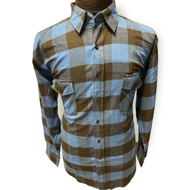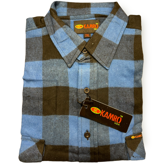 Een flanel ( houthakkers ) overhemd lange mouw van het merk Kamro in de kleur blauw geblokt. Hemd is voorzien van 2 borstzakjes.