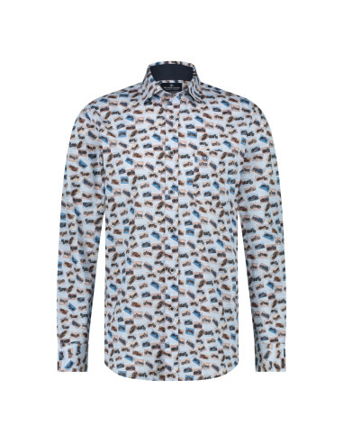 Een stoer casuele overhemd lange mouw van het merk Fellows United met opdruk van motoren en autos, hemd is voorzien van een borstzakje.