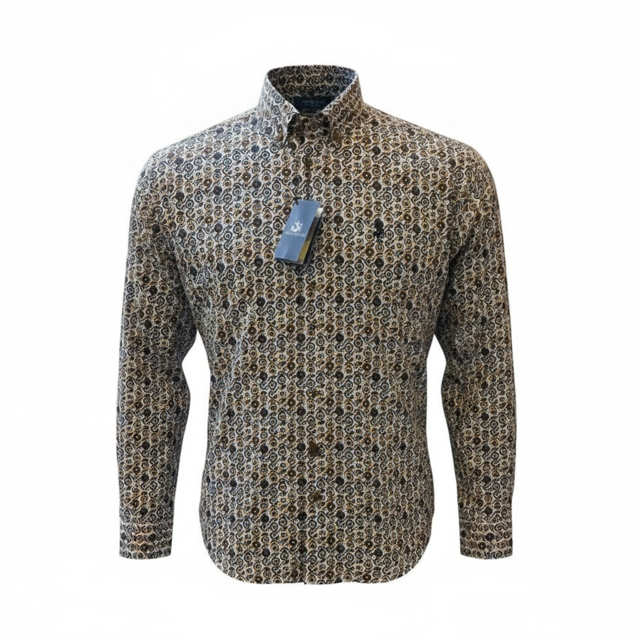 Een modern overhemd lange mouw het van het merk Eden Valley, hemd heeft een retro patroon en is voorzien van een borstzakje.