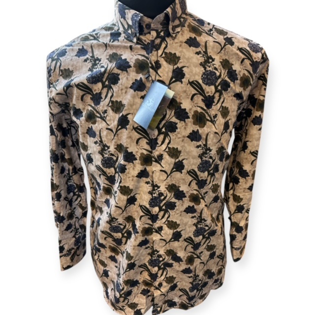 Een modern overhemd lange mouw het van het merk Eden Valley, hemd heeft een bloem/ bladeren patroon en is voorzien van een borstzakje